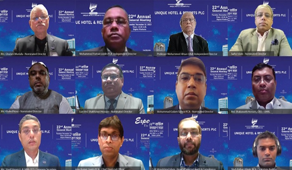 নিজস্ব প্রতিবেদক : শেয়ারবাজারে তালিকাভুক্ত ইউনিক হোটেলের এজিএম (বার্ষিক সাধারণ সভা) সম্পন্ন করা হয়েছে। গতকাল কোম্পানিটির ২২তম এজিএম ডিজিটাল প্লাটফর্মে অনুষ্ঠিত হয়েছে। এতে সভাপতিত্ব করেন কোম্পানীর পরিচালনা পর্ষদের পরিচালক বীর মুক্তিযোদ্ধা রোটারিয়ান গোলাম মুস্তাফা ।