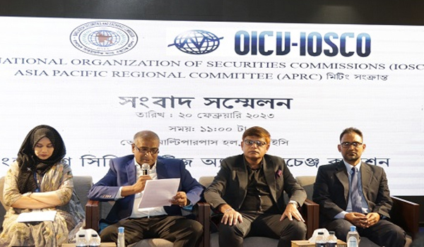 সোমবার আগারগাঁ বাংলাদেশ সিকিউরিটিজ অ্যান্ড এক্সচেঞ্জ কমিশনের (বিএসইসি) ভবনে আয়োজিত ইন্টারন্যাশনাল অর্গানাইজেশন অব সিকিউরিটিজ কমিশন্সের (আইওএসকো) এশিয়া প্যাসিফিক রিজিওনাল কমিটির (এপিআরসি) দুই দিনব্যাপী সম্মেলন উপলক্ষে সংবাদ সম্মেলনে এ কথা বলেন বিএসইসির নির্বাহী পরিচালক সাইফুর রহমান। এ সময় উপস্থিত ছিলেন- মাহবুব আলম, নির্বাহী পরিচালক মোহাম্মদ রেজাউল করিম প্রমুখ।