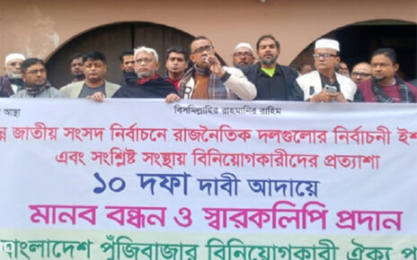 অবসায়ন সিদ্ধান্তে ক্ষোভ, বাংলাদেশ ব্যাংকের সামনে বিনিয়োগকারীদের মানববন্ধন