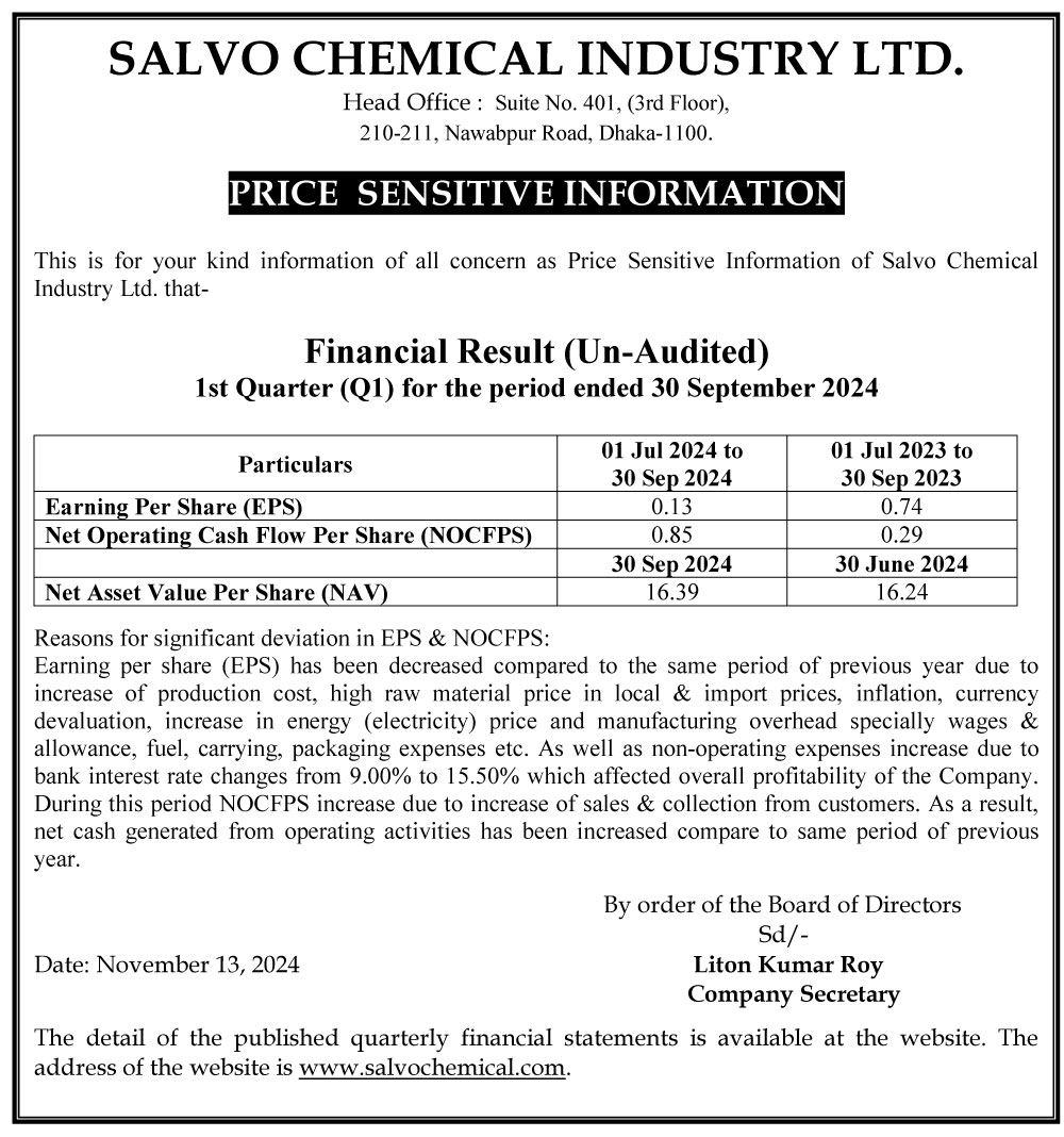 price sensitive information for salvo chemical