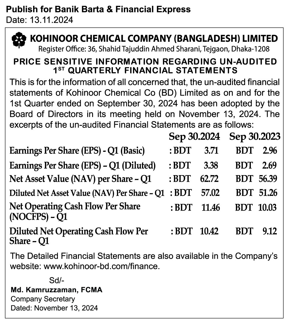 price sensitive information of kohinoor chemical company সময়: বুধবার, নভেম্বর ১৩, ২০২৪ ৫:৩৪:২৩ অপরাহ্ণ Shares