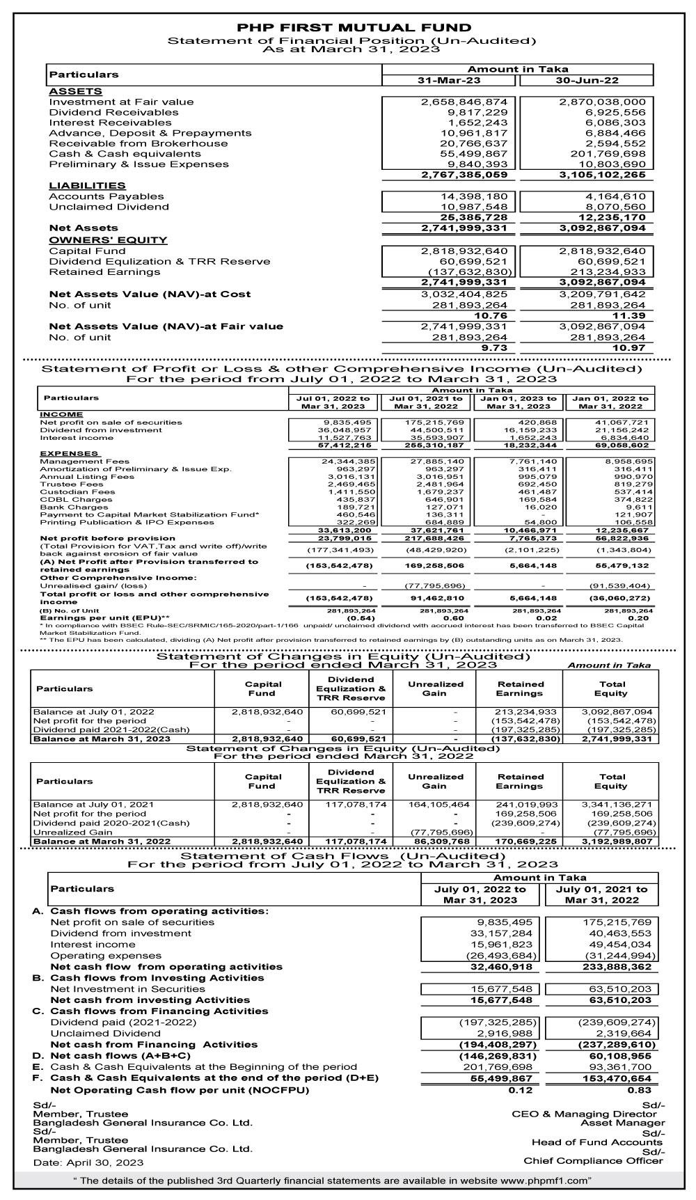 price sensitive information of PHP first mutual fund সময়: মঙ্গলবার, মে ২, ২০২৩ ৬:৩৩:১৮ অপরাহ্ণ Shares
