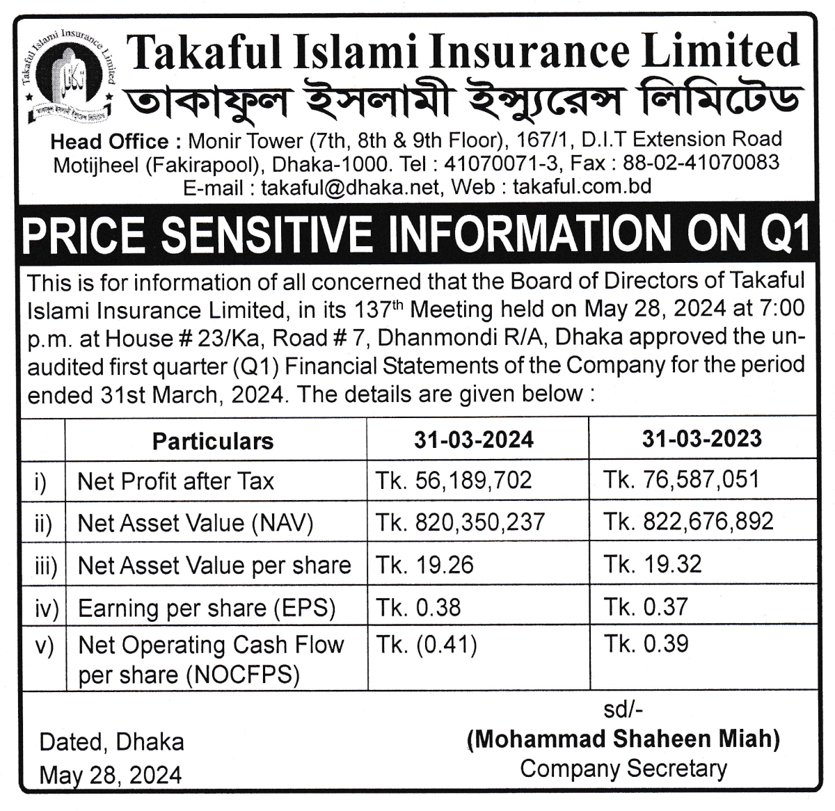 price sensitive information of takaful islami insurance সময়: মঙ্গলবার, মে ২৮, ২০২৪ ১০:৪৭:২৯ অপরাহ্ণ Shares